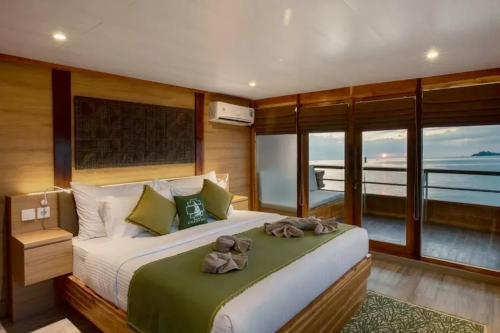 Indo Master is a 37-meter phinisi-style yacht blending traditional Indonesian craftsmanship with modern comforts. With multiple cabin options, spacious decks, and areas to relax between dives, the vessel is perfectly suited for exploring Komodo’s diverse marine environment while simultaneously enjoying luxury accommodations.