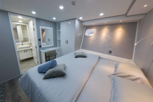 The Palau Siren features spacious cabins that are perfect for solo travelers and couples. Each room is equipped with a comfortable bed, ensuite bathroom, and air conditioning.