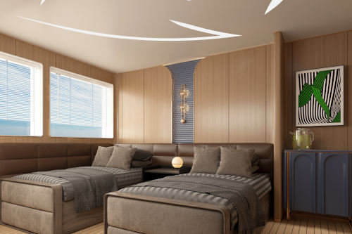 Cabin Overview: 8 Deluxe Cabins (twin/double), located on the upper deck with large sea view windows; 1 Master Cabin featuring panoramic windows, a private balcony, a sofa, and a kid’s room; 3 Lower Deck Cabins available upon request