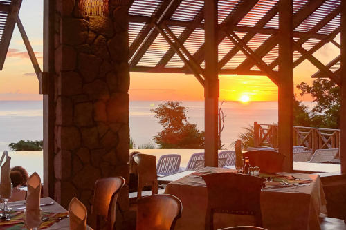 The resort has sixty Eco Villas that have been tastefully designed with stone and hardwood. The villas overlook the marine sanctuaries of Scotts Head and Soufriere. The villas have views of the enchanting forests that are full of tropical trees, banana plants, and flowers. The villas are luxurious and spacious, and there are two room categories offered. Guests can choose from the Villa Suite and the Villa Room. All accommodations have hand-painted bedding by artisans, palm tree inspired lamps handmade by local craftsmen, bamboo furnishings, jungle spa bathroom with a raindrop shower head, biodegradable body products, mini fridge, and coffee maker.